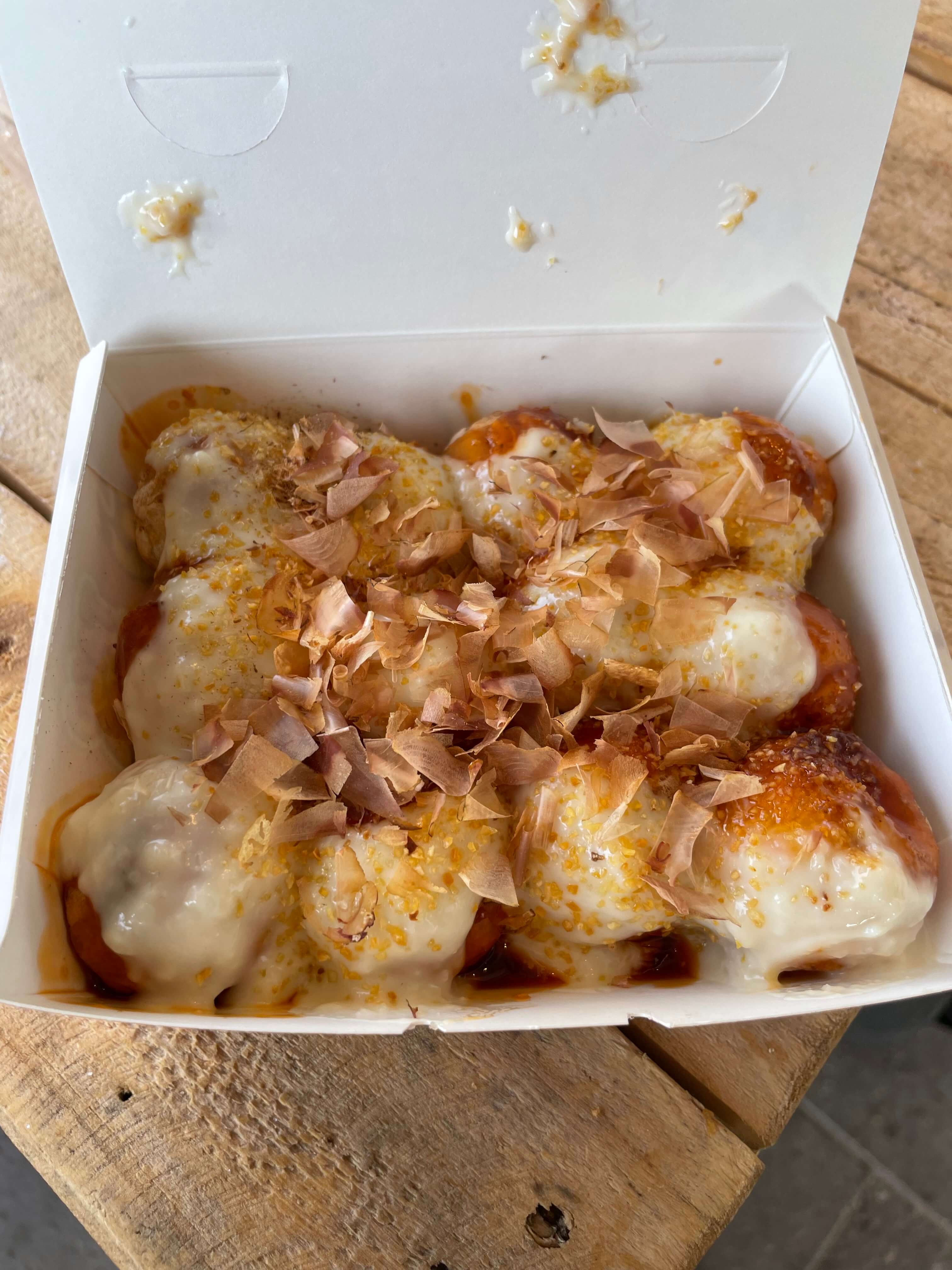 - 일반 타코야끼 (9,500원): 친숙하지만 달콤하고 뜨끈해서 몸과 마음을 녹여주는 베이직한 맛! 빵 부분이 흐물거리지 않고 적당히 바삭하고 단단해서 식감이 훌륭합니다.