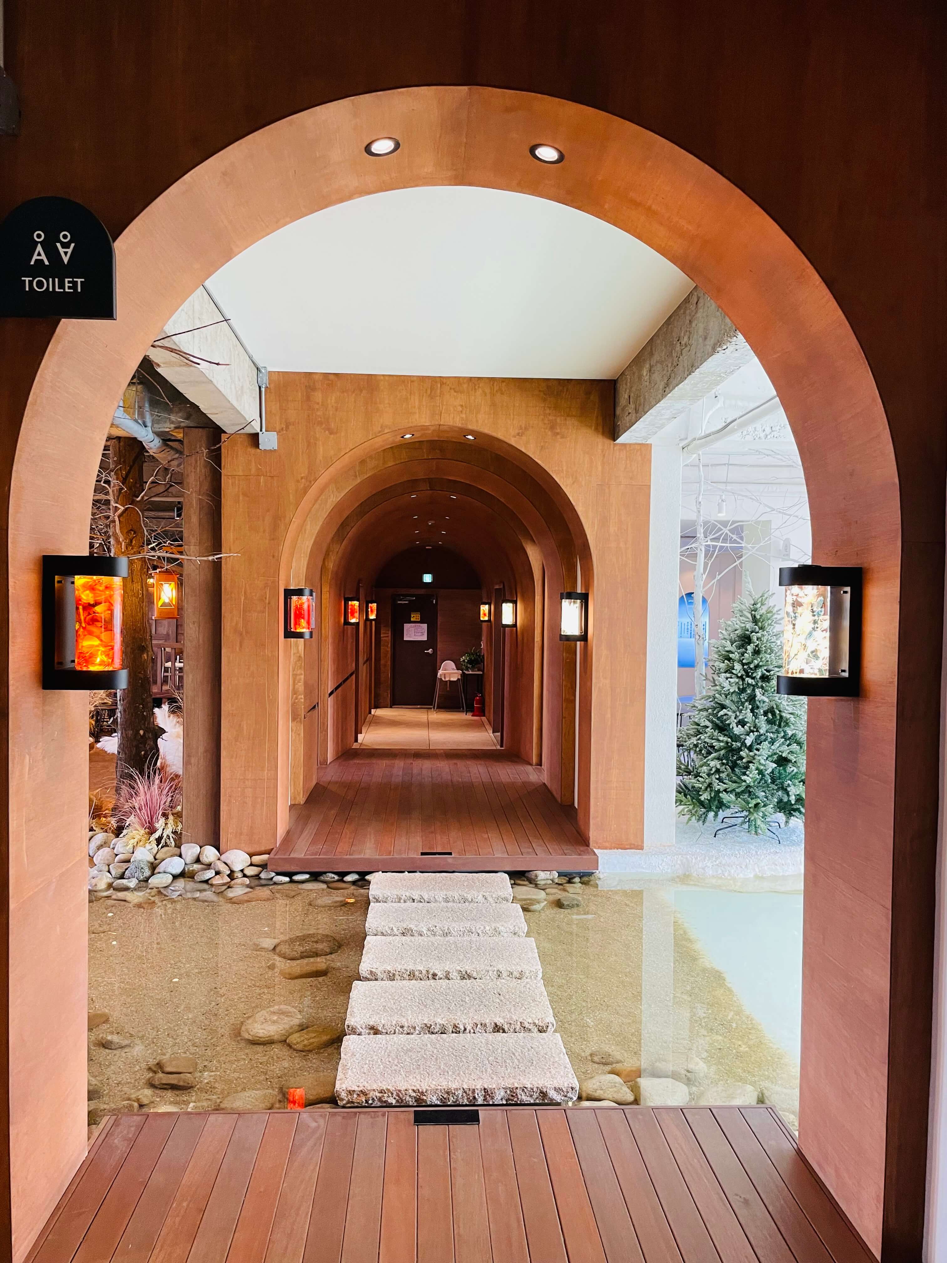 - 아치형 디테일: 로비를 지나 만나는 고풍스런 아치형 홀과 복도, 사이니지에도 아치가 적용되어 있습니다. 이는 태양계 행성들이 이동할 때 표현되는 곡선 궤도를 아치 형태로 표현하여 건물 안 곳곳에 디테일을 담아낸 것입니다.