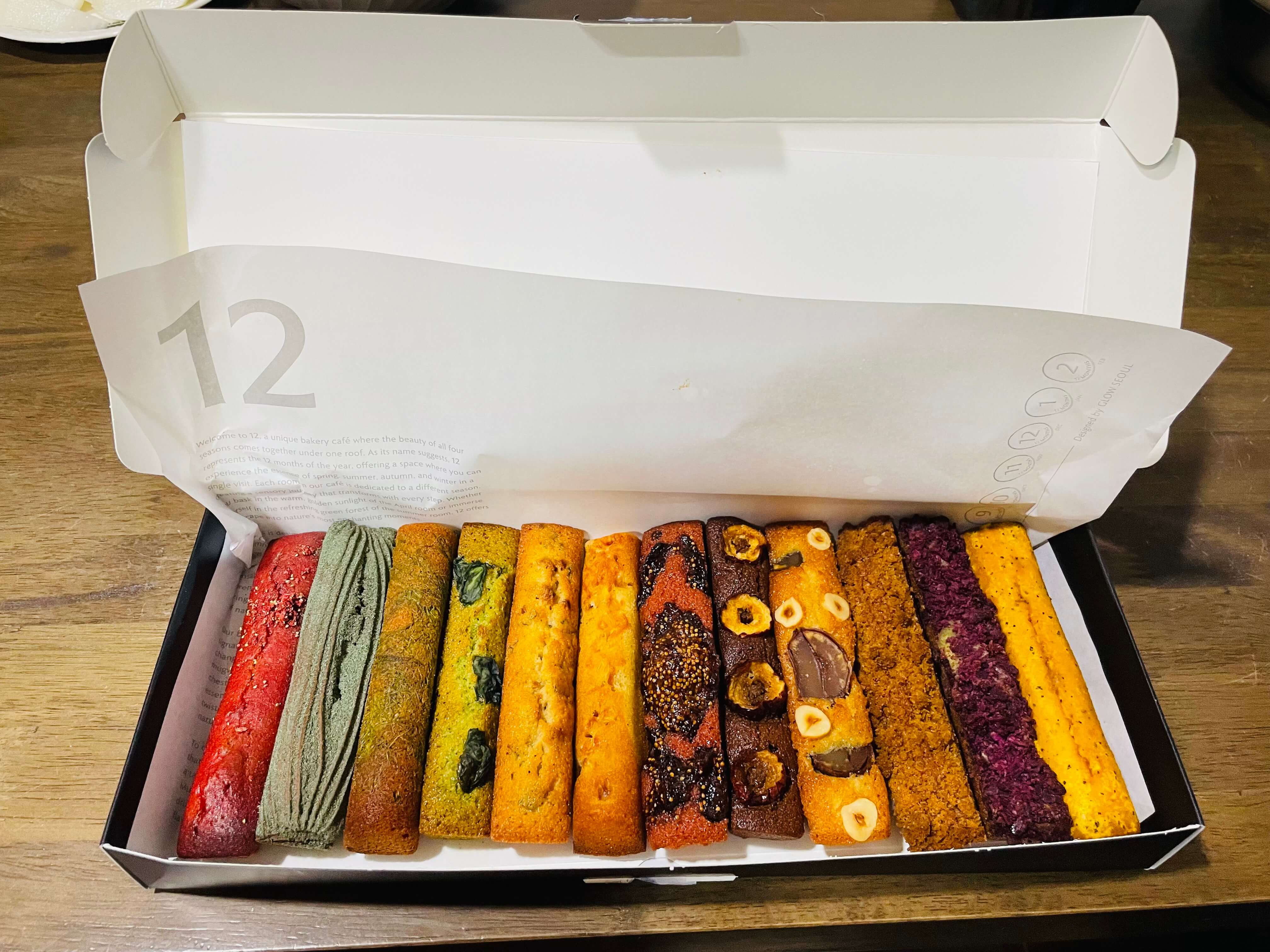 4개만 맛봤는데도 배가 불렀지만, 맛이 하나도 지루할 틈 없이 계속 새로운 맛들이 혀를 강타해서 도저히 다른 8개의 맛이 궁금하지 않을 수 없었어요. 결국 "12개가 담긴 세트(39,000원)"를 선물용으로 주문했습니다. 집에서 가족들과 먹어 볼 예정인데, 패키지까지 너무 예뻐서 눈을 사로잡았어요!