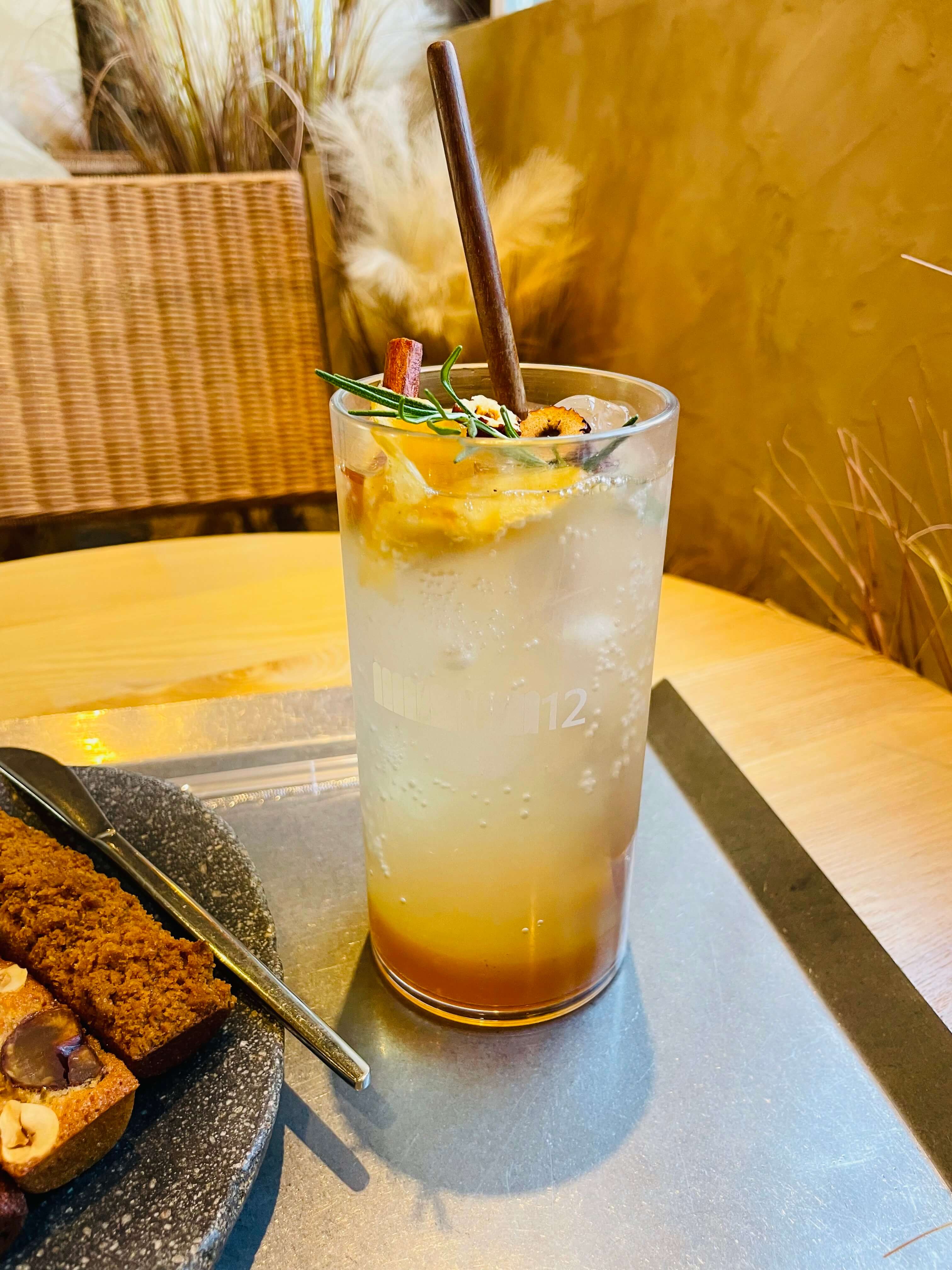 "우리가 어디에서나 자주 쉽게 마시는 청포도 에이드, 망고, 복숭아 같은 맛이 아니다."라는 유정수 대표의 말처럼, '열두달'의 음료는 밀양의 특산물을 활용하여 차별화된 맛을 선보입니다. 저는 가을에 맞춰 휘낭시에와 함께 애플진저 티 에이드를 주문했습니다.