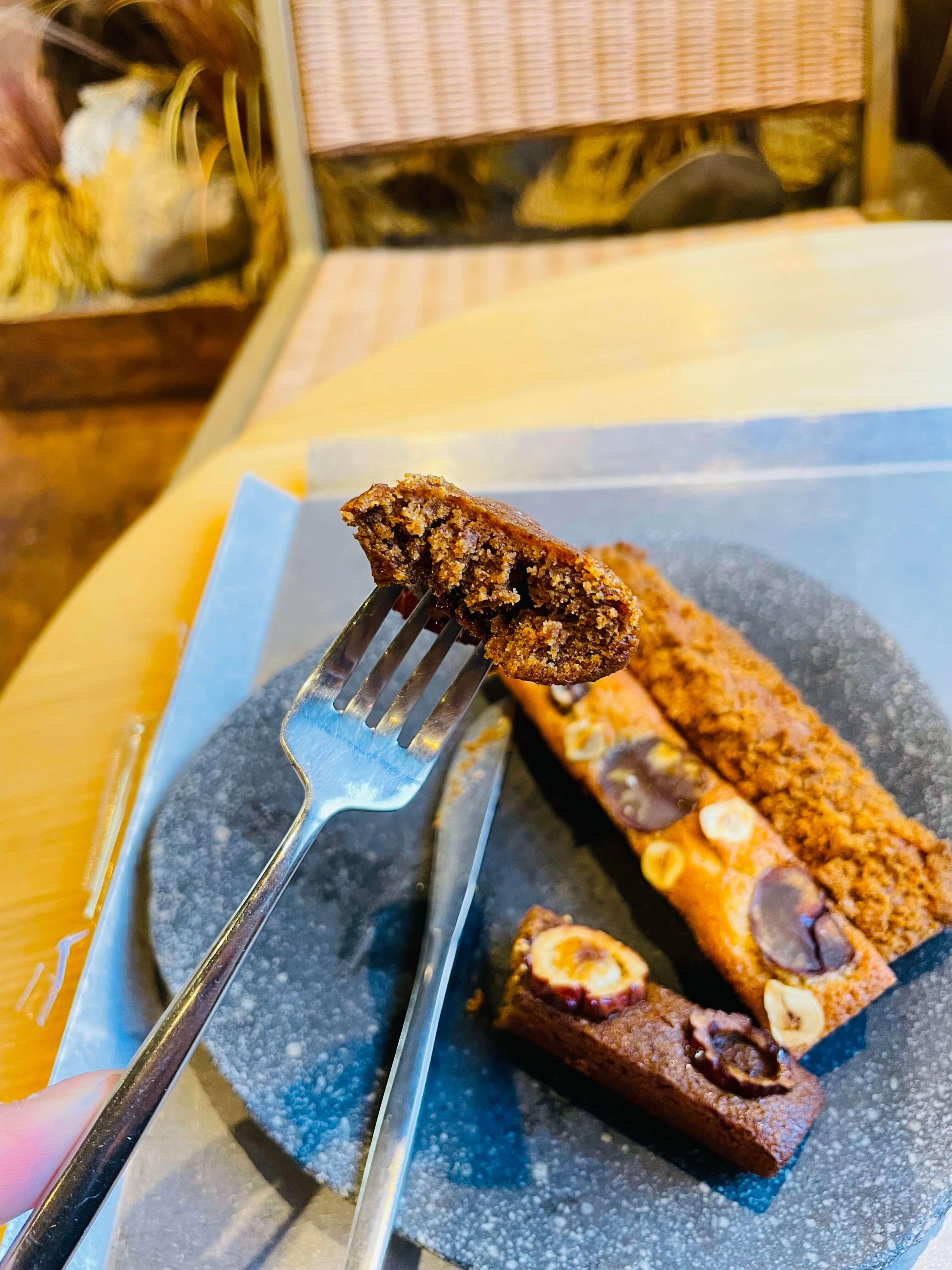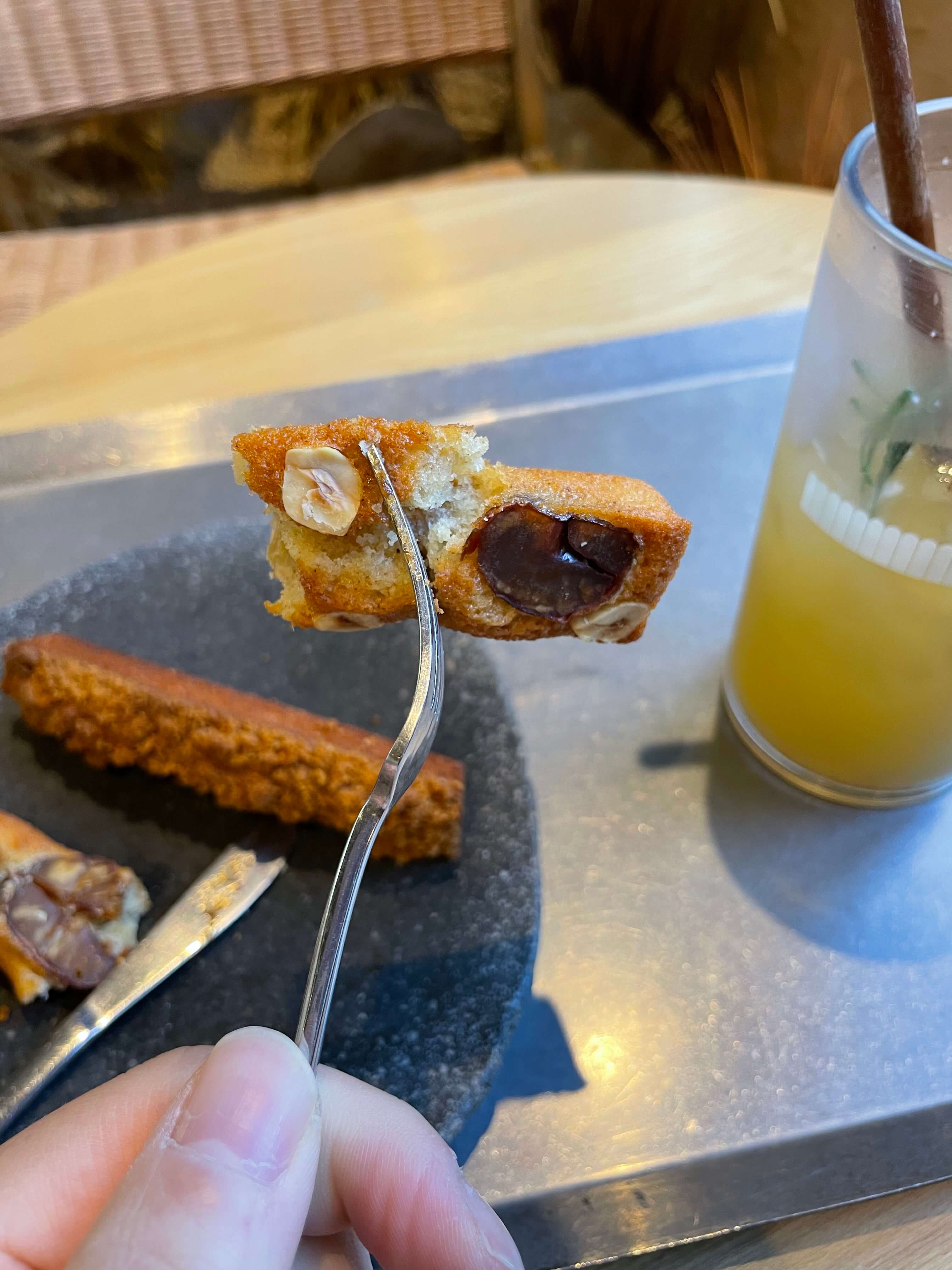대추 맛이 아주 진하게 느껴지는 휘낭시에. 호불호가 갈릴 수 있지만, 이 진한 대추 향을 좋아하는 분들은 매우 만족할 것 같습니다. 겉바속촉 식감에 대추가 겉돌지 않고 하나였던 것처럼 느껴지는 것이 신기했어요. (다만 대추가 씹히는 식감은 개인적으로 조금 아쉬웠습니다.)