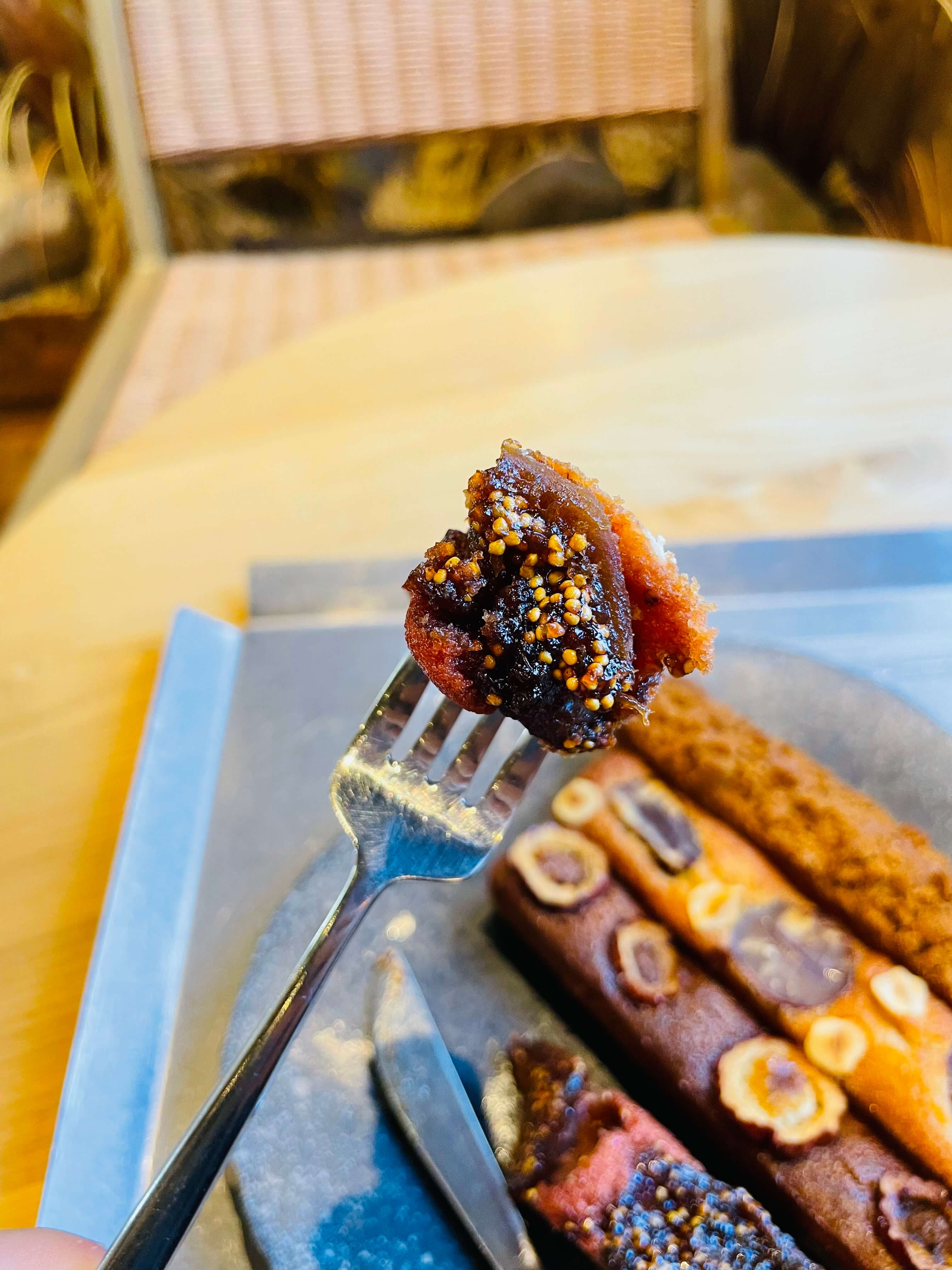쫀뜩하게 씹히는 무화과 식감과 향이 일품. 곶감과 같은 쫀뜩함과 무화과의 달콤함이 채워져요. 와인 향은 은은했지만, 부드러우면서도 꾸덕하거나 딱딱하지 않은 적당히 단단한 굳기가 불편함 없이 좋았습니다.