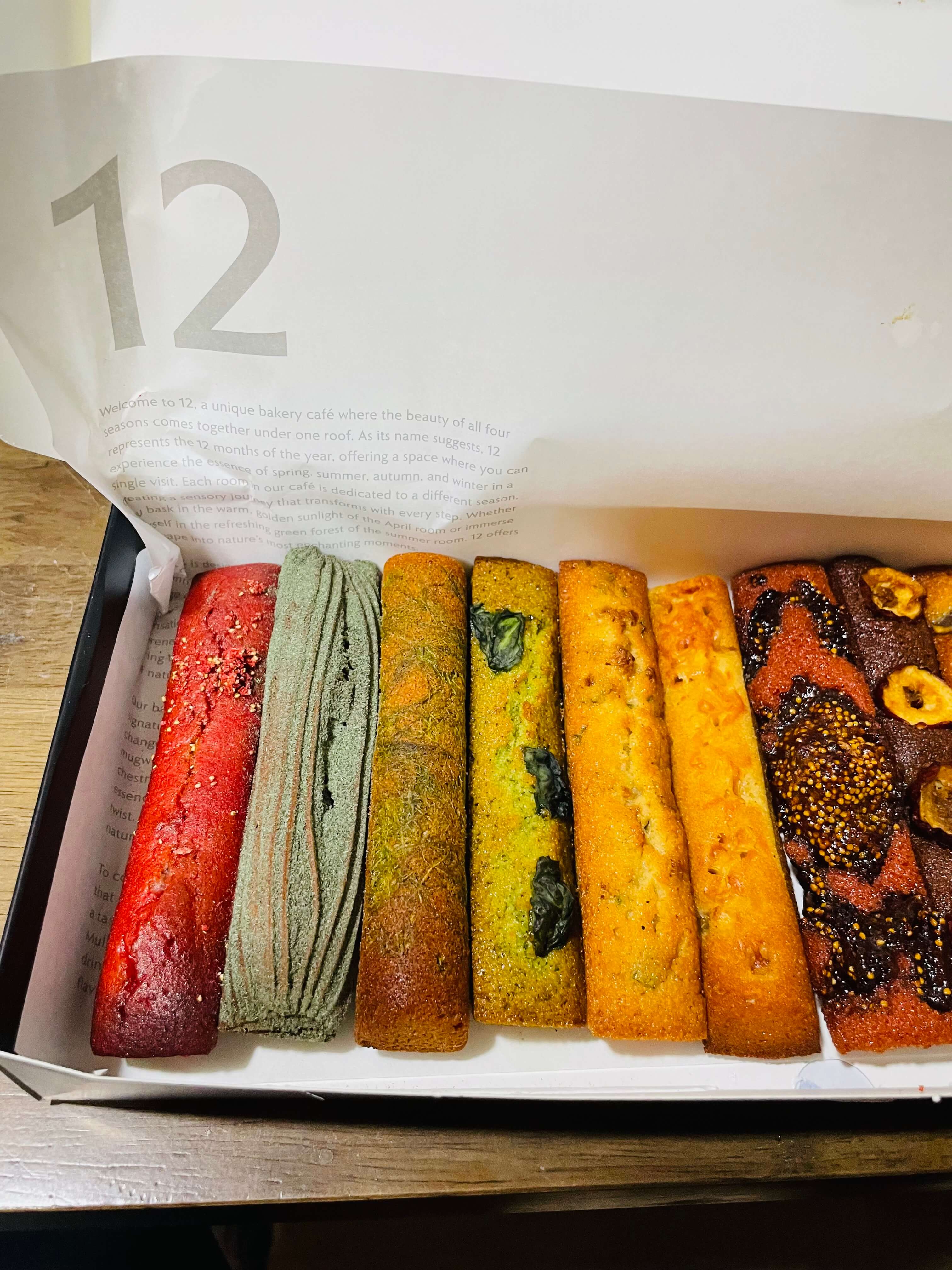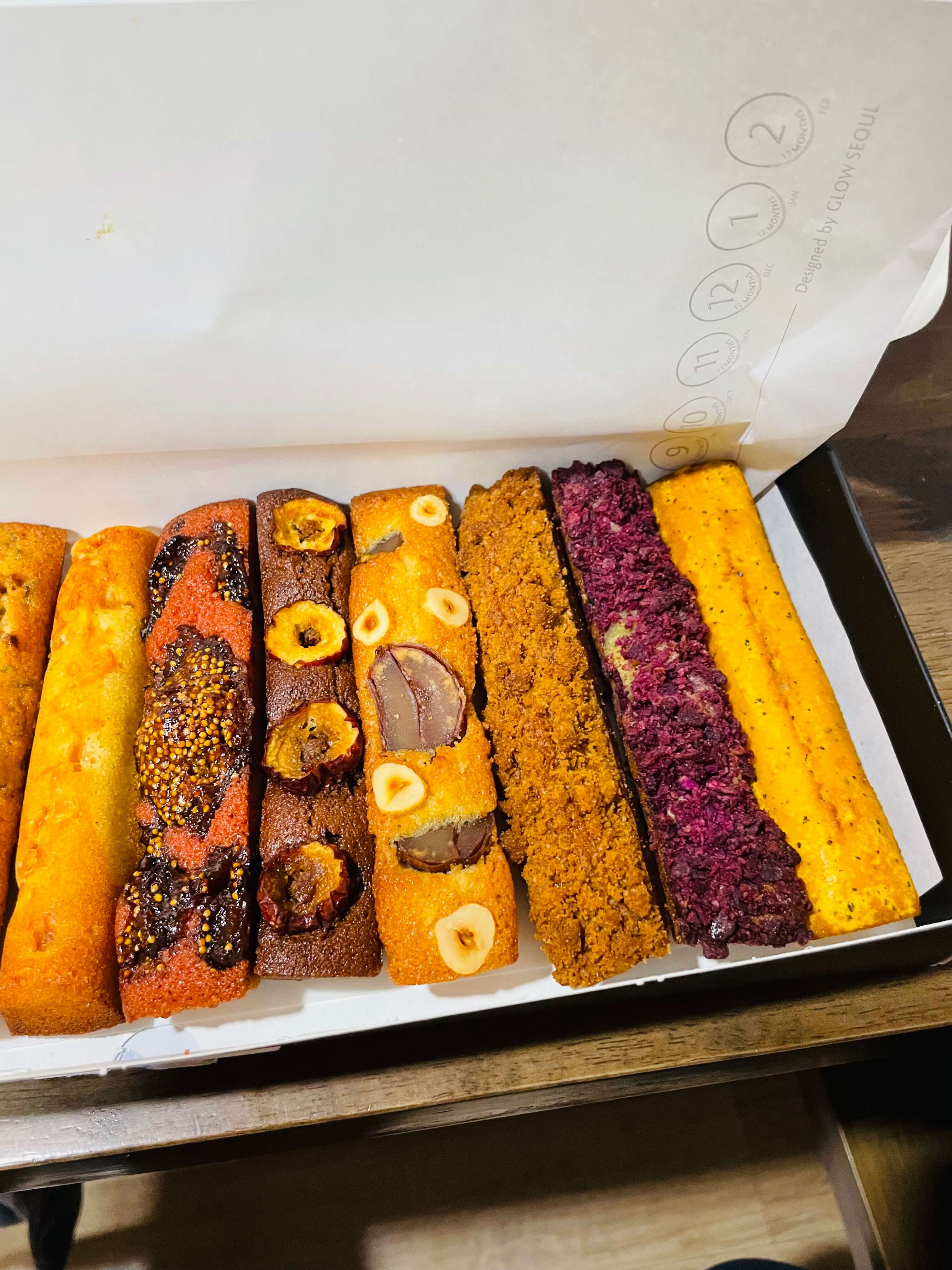 - 각각의 색깔이 확실함: 12개의 휘낭시에가 단순히 맛만 다른 것이 아니라, 각각 고유의 재료의 맛을 가장 잘 표현하도록 베이스부터 개별적으로 설계되었습니다.
