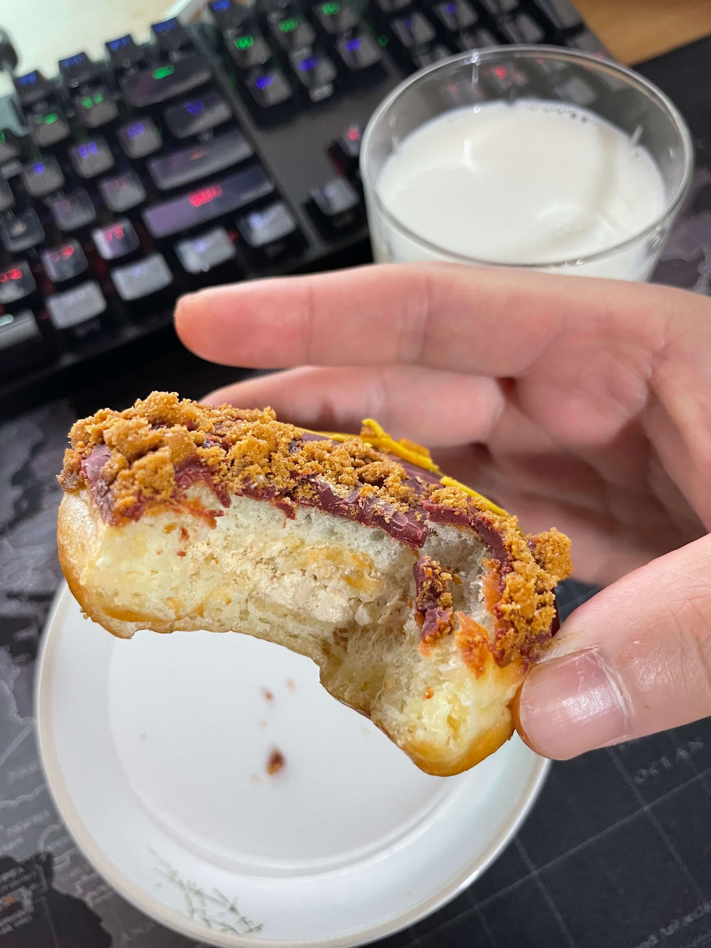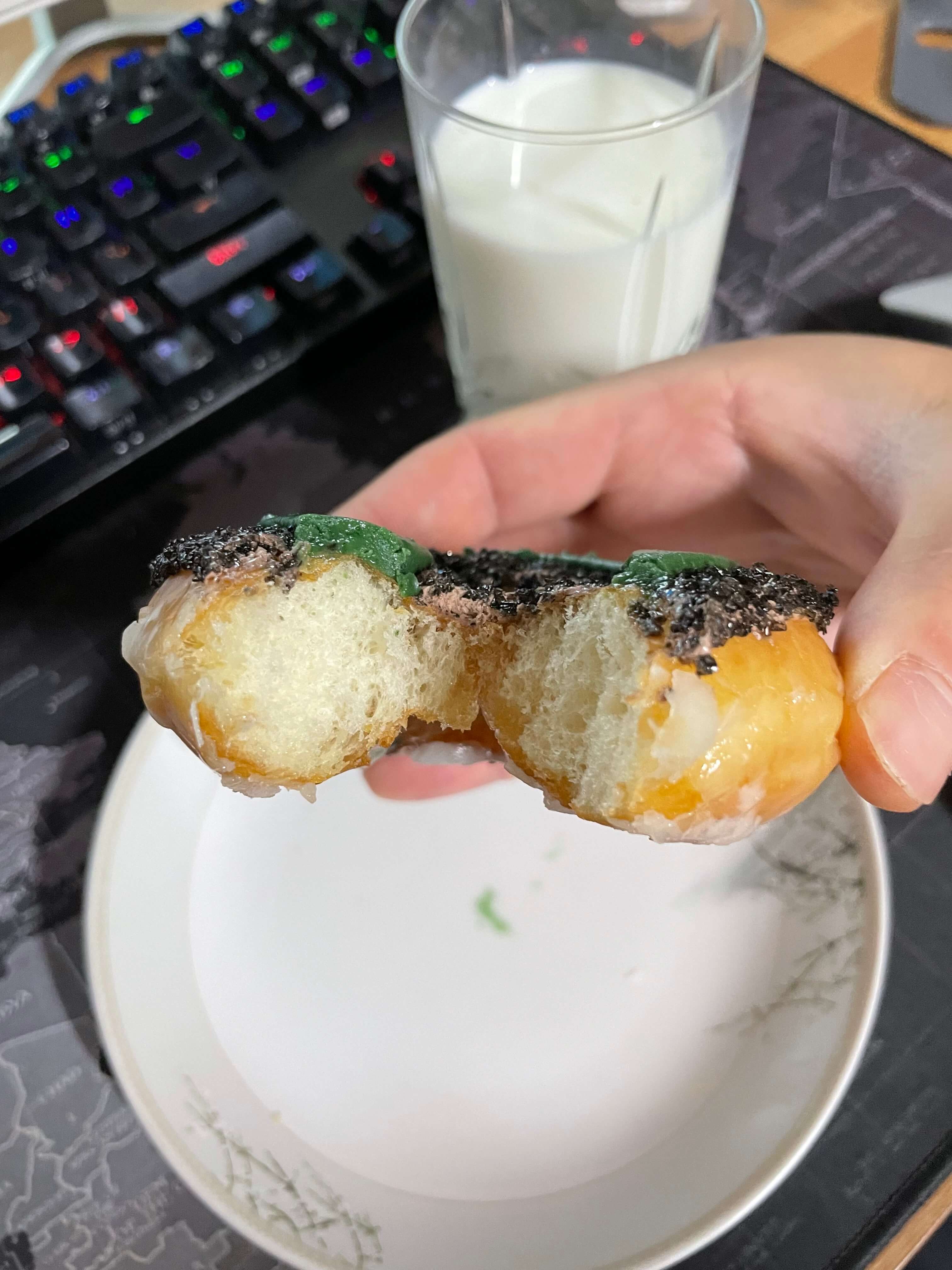 저에게는 기본 글레이즈드 도넛도 너무 달아요! 물론 설탕 코팅 덕분에 그런 거겠지만… 제 입맛에는 정말 ‘극강의 단맛’입니다.